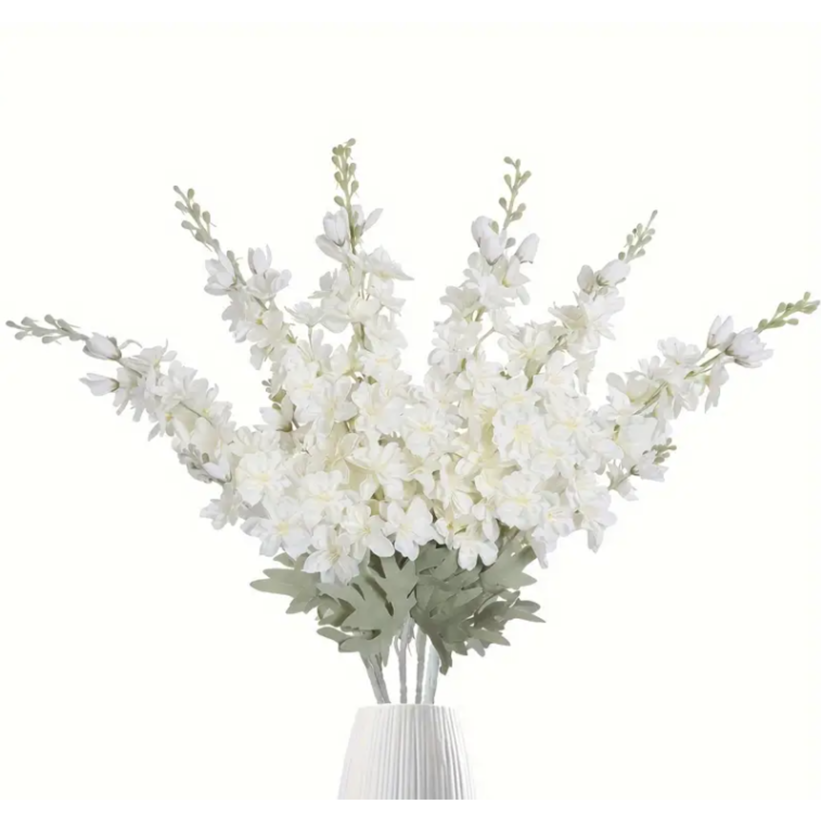 White buttercup faux floral insert with light sage green leaves and stem